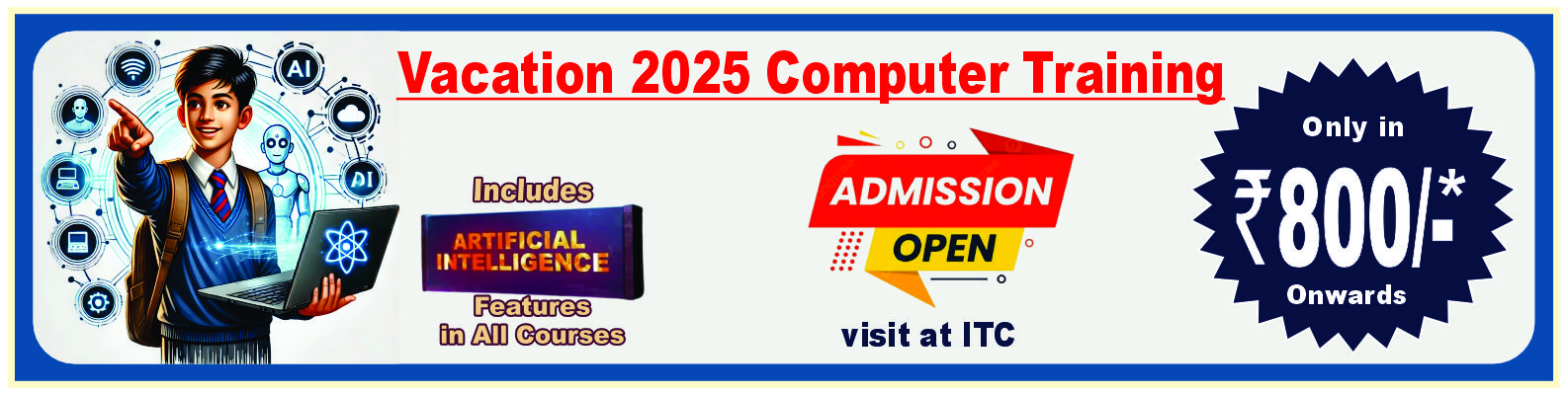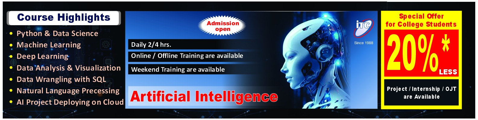 AI Concepts, Python Programming, Mathematics Essential, IoT Sensors and Devices, IoT and SQL Programming, Machine Learning and Deep Learning Language Programming, Robotics Concepts, AI Application & Project Data Science Applications, Cloud Computing